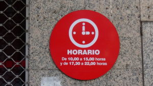 Las tiendas y la mayoría de los negocios cierran desde aproximadamente las 2:30 hasta las 4:30 PM durante el almuerzo. Porque el almuerzo es tarde y la cena es tarde también, alrededor de las 9 – 10, o incluso 11 PM. Todo está cerrado los domingos.