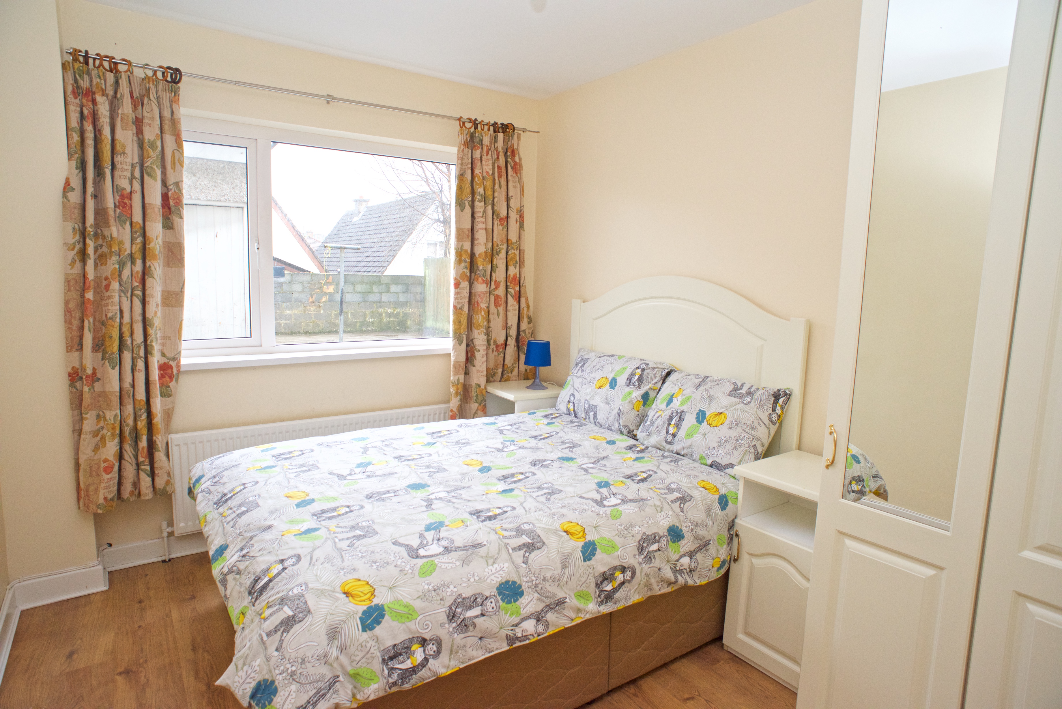 Bright and comfortable house with 4 fully furnished bedrooms (2 twins and 2 single bedded), kitchen and living room, located 15 minutes walking distance from the city centre, 5 minutes from NUIG Entrance and bus stop, close to commercial buildings and services, in a quite residential contest. Guests can easily park bikes in the back garden with private space.